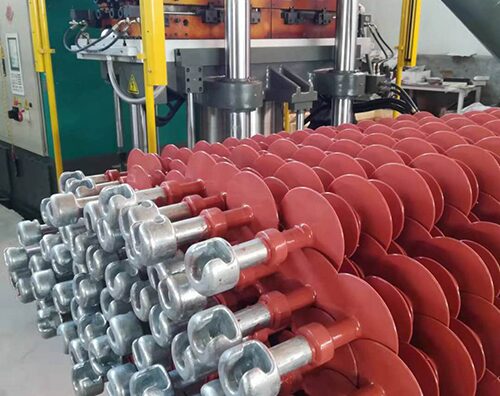 硅橡胶绝缘子一般指主要由伞盘(伞裙或 护套)、芯棒及金属端头三部分组成的复合绝缘子, 其中伞盘由热硫化硅橡胶制造,芯棒采用环氧树脂,经特殊工艺制成。同传统的陶瓷或玻璃串比较,具 有许多优点,主要表现在:质量轻、强度高。由于其主要构成材料是容重 比陶瓷和玻璃低得多的硅橡胶和环氧树脂,而且只 有两端的金属联接附件,整体重量只及陶瓷和玻璃绝缘子串的1/10-1/7,而其拉伸强度却高出3-4倍。