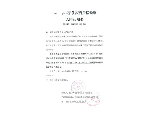 新乡华源电力集团有限公司入围通知书